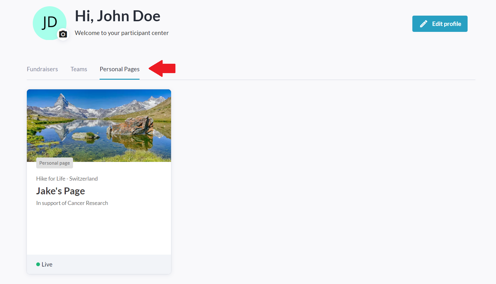 Click the Personal Pages tab under your name.