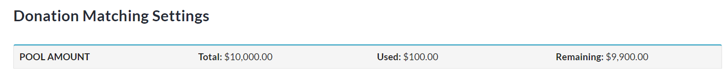 The Donation Matching menu will reflect any changes to the pool of funds, allowing you to keep up with how much money is available at any point in time for this matching campaign.