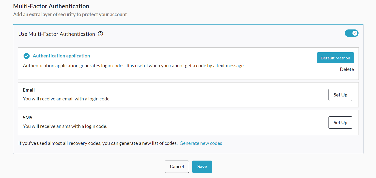 Scroll down within your Profile to set up Multi-Factor Authentication. We recommend using the Authentication Application option.