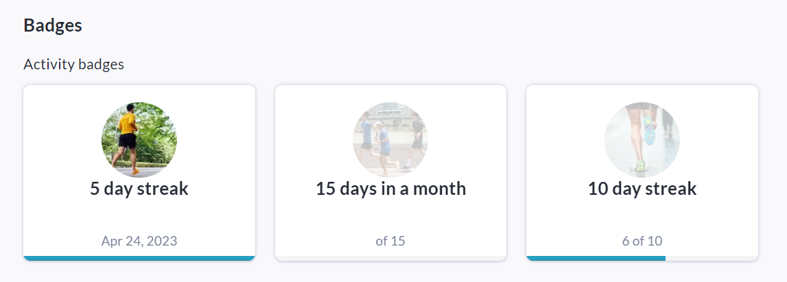Track activities consistently without missing a day to earn a streak, which will count towards Badges and Milestones! Badges and Milestones can also be linked to a total reached instead of a streak if desired.